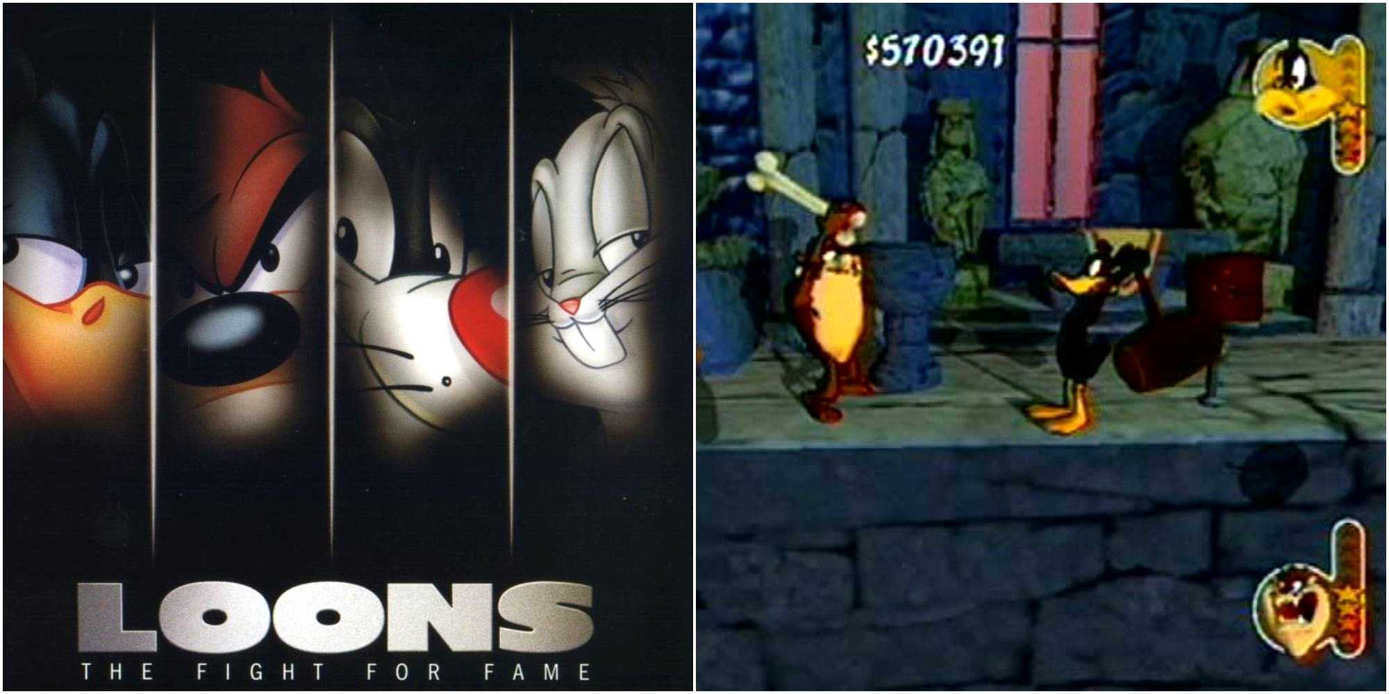 Loons: The Fight For Fame — это трехмерный файтинг в стиле cel-shaded art, выпущенный эксклюзивно для Xbox в 2002 году. По сравнению с некоторыми прошлыми играми Looney Tunes, в Loons гораздо меньше игроков, всего четыре играбельных персонажа, включая Багза Банни, Даффи Дака, Сильвестра и Тасманского дьявола, хотя несколько других персонажей все же появляются в игре. Loons поддерживает до четырех игроков, и им предстоит сражаться друг с другом, собирая различные гаджеты ACME, чтобы получить преимущество над соперниками. В несколько мини-игр можно играть после того, как игрок заполнит свой счетчик звезд, собирая различные предметы.