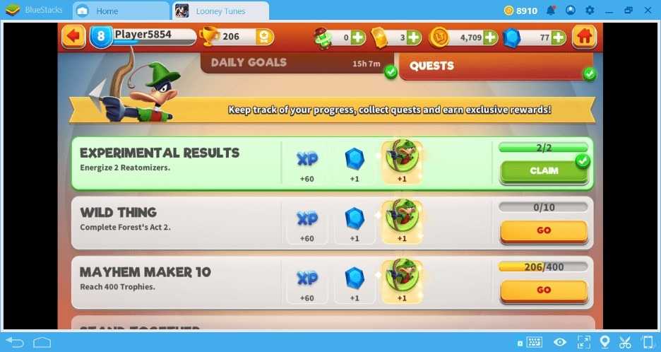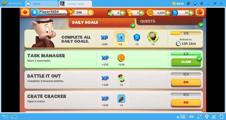 Это в основном очки опыта и внутриигровые предметы. И если вы выполняете все ежедневные цели, то у вас есть шанс получить редкие ресурсы. Так вы сможете легко получить редкого Мультяшку в свою коллекцию всего через несколько недель. Кроме того, выполняя ежедневные цели, вы получаете самоцветы.