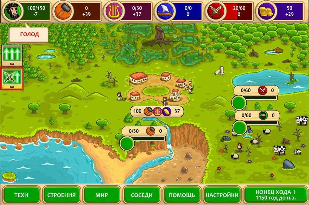 Главной задачей является развитие своего полиса. Когда вы благоустроите его, вы можете заниматься дипломатией или войной, торговать или развивать науку.