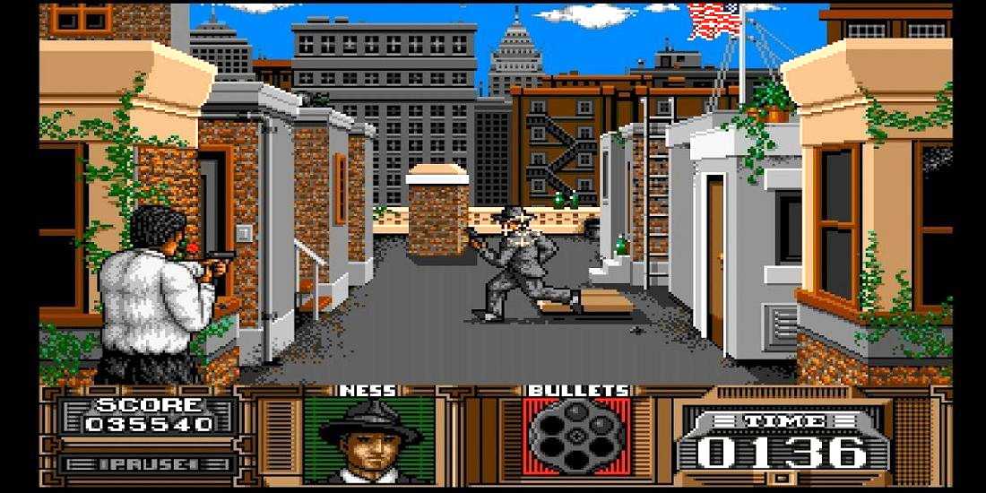 Видеоигра 1989 года, основанная на фильме 1987 года, снятом по книге 1957 года, в которой рассказывается реальная история о попытке Элиота Несса создать группу, известную как «Неприкасаемые», чтобы уничтожить Аль Капоне. Игра представляет собой сайд-скроллер (а это все, чем она могла быть в ту эпоху), который пытался адаптировать некоторые экшен-фрагменты фильма в видеоигру, где вы пытаетесь уничтожить всех приспешников Аль Капоне на пути к уничтожению самого большого босса. Эта игра вышла на старых системах, таких как Commodore 64 и Amiga, а затем была замечена на Nintendo NES и Super NES.