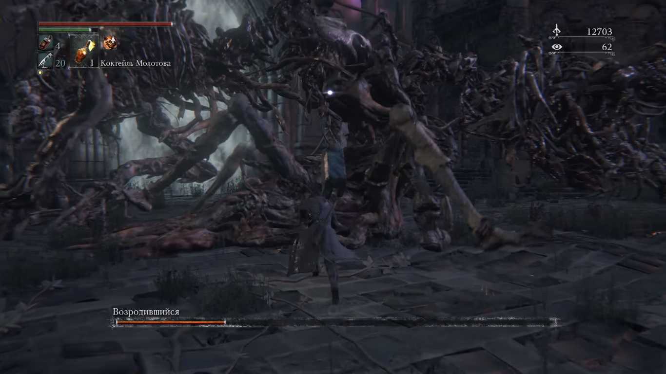 Также не забудьте зажечь появившийся фонарь, с его помощью вернитесь в Сон охотникаи распределите очки. Затем снова вернитесь в здание с Ликантропом, но на этот раз не спускайтесь в низ я пройдите через огромный зал к выходу. На улице вам придется убить «Горшочника», это большая куча трупов слепленная воедино, к ней можно легко подкрасться и убить. После этого идите по переулку с каретами, будьте осторожны из-за угла на вас нападет «Горшочник», так же один будет сидеть в одной из карет. Посредине переулка вы увидите шесть «Горшочников», лучше всего выманивать их по одному, в этом поможет камень. После зачистки верните назад и спуститесь по ступенькам в низ, пройдите через открытые ворота. Эта местность полна врагов, первым делом убейте «Деву с колокольцем», зайдите на мост и перейдите его, после этого бегите вдоль стены здания, там и будет дева. Зачистив территорию бегите дальше, преградой для вас станет «Горшочники», эти уже будут певаться в вас, заманите их в ловушку и убейте. После этого идите вдоль улицы, через некоторое время вы увидите ролик и появиться босс — Возродившийся. Увив его заберите «Желтый хребет»и зажгите фонарь. После этого зайдите в здание и исследуйте тело, вы перенесетесь в Лекционный корпус.