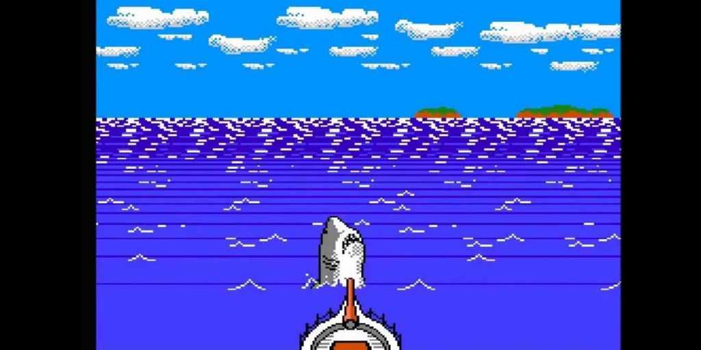 Выпущенная в 1987 году для NES игра по фильму «Челюсти» предлагала всем желающим бороздить океан на лодке в поисках огромной акулы. Периодически нужно было нырять под воду и сражаться с медузами, акулами и другими морскими обитателями. А когда на горизонте появлялась та самая акула из фильма, её нужно было таранить лодкой, что запускало битву с боссом.