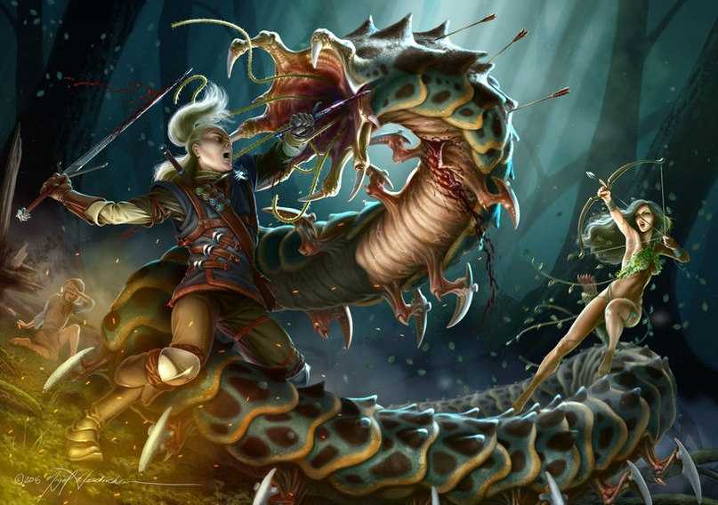 Первое столкновение Геральта с членистоногим чудищем случилось в лесу Брокилона, вотчине дриад. Там он защитил Цири от гигантской многоножки, бросившейся на девочку. В бою с Белым Волком тварь с невероятной скоростью передвигалась по земле, использовала жвалы и обвивала конечности противника, как удав. Хорошо, что в играх поведение сколопендроморфов отличается от книжных прототипов. Пока они далеко (даже если стреляет в меня кислотой), руки меньше трясутся.