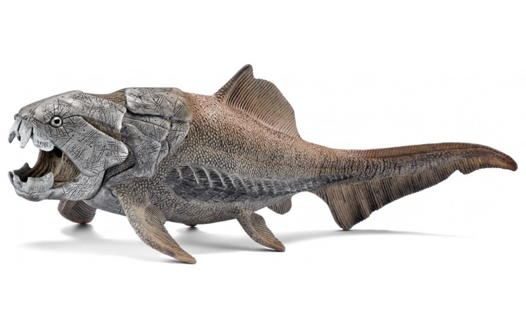 От 415 до 360 миллионов лет назад моря бороздили настоящие бронированные рыбы — дунклеостеи. От них чаще всего находят головы, точнее, окаменевшую костяную броню этих голов, и уникальные челюсти, которые и сделали этих тварей такими смертоносными. Вместо зубов как таковых у дунклеостея были две пластины, которые действовали по принципу гильотины — резко закрываясь, они как лезвия перерубали зазевавшуюся жертву на куски. При этом они открывались со скоростью одна пятидесятая доли секунды, за счет чего близко находящуюся добычу буквально засасывало в пасть хищнику.