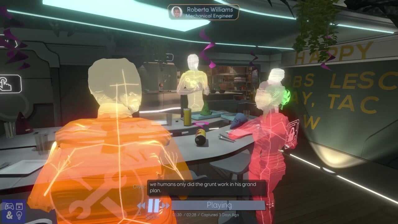 Интересна тут скорее сама тема. Действие игры разворачивается в 2088 году, но изучать, как на персонажах сказывается изоляция в небольшой команде, интересно и сейчас – точнее, особенно сейчас. Тем более что благодаря продвинутым технологиям геймер не копается в пыльных текстовых записях, а наблюдает за полностью озвученными и анимированными голограммами. Вы можете свободно перемещаться в этих сценах и перематывать их в поисках новых реплик, меняющих восприятие истории в целом.
