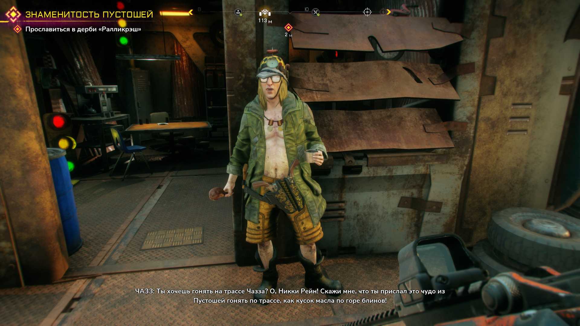 Добираемся до места и говорим с Чаззом. Нам предстоит проехать два круга. Используем нитро и никакой сложности в прохождении трассы на первое место не будет. Нужно прийти именно первым. Полученные жетоны можно использовать на прокачку машины. Также откроется транспорт Болид «Ралликрэш».