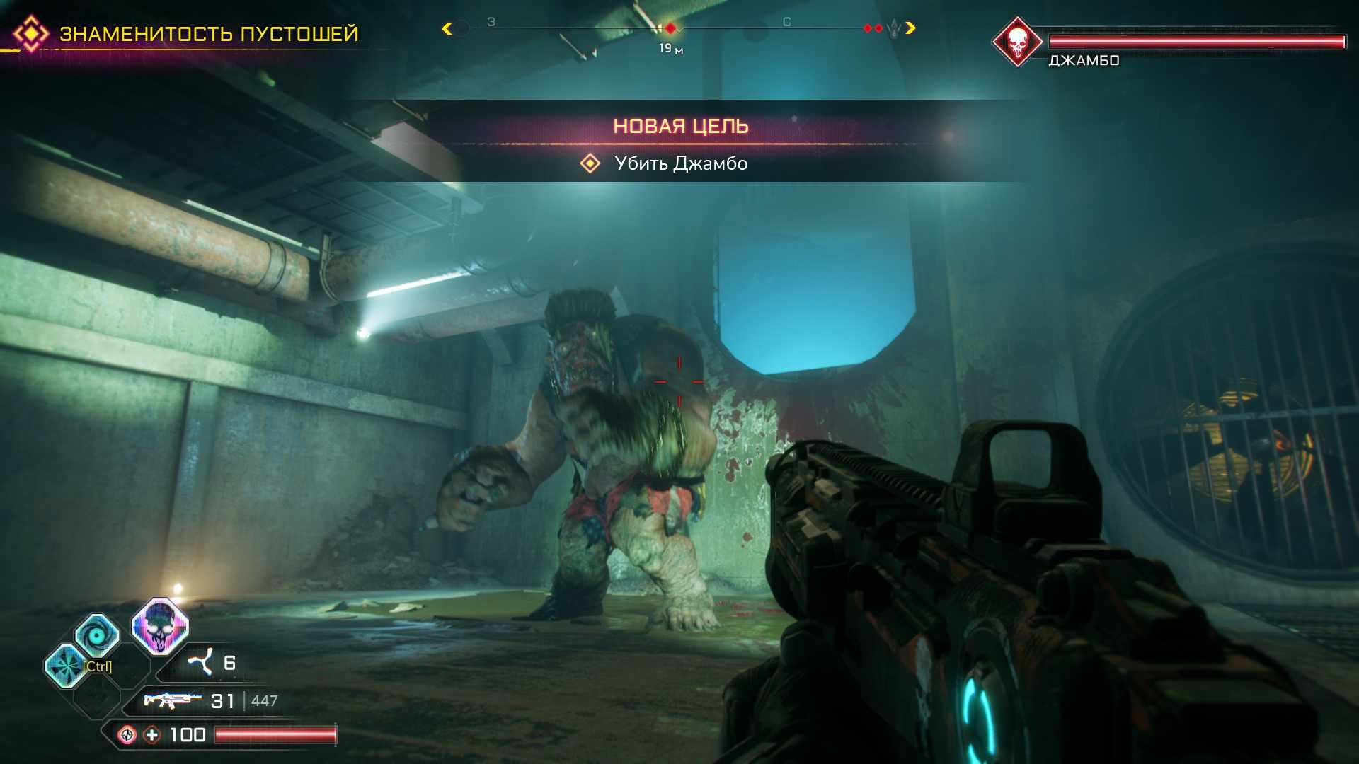 Отправляемся на ближайшую к нам точку — арену, и смотрим ролик. Мы попали на шоу «Убей мутанта». Спускаемся на лифте вниз. Нам надо пройти четыре арены с мутантами и боссом из предыдущей миссии. Используем доступное оружие — дробовик. Победив в поединке, возвращаемся назад и поднимаемся на лифте.