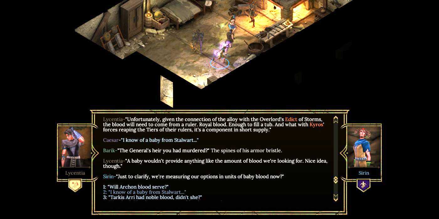 Поскольку это еще одна изометрическая ролевая игра, разработанная и изданная дуэтом Obsidian/Paradox, некоторые игроки могут счесть ее слишком похожей на Pillars Of Eternity, и это вполне объяснимо. В конце концов, эти две ролевые игры используют один и тот же движок. Шрифты в диалоговых окнах и графика игры в целом практически идентичны. Pillars, однако, Tyranny вносит некоторые изменения, которые делают ее еще лучше. Благодаря более сфокусированному на истории подходу поклонники высокой фантастики будут чувствовать себя как дома, играя в Tyranny. Tyranny. Выбор диалогов тесно связан с историей и предысторией мира игры, и внимательное отношение ко всем разговорам имеет первостепенное значение для прохождения игры.