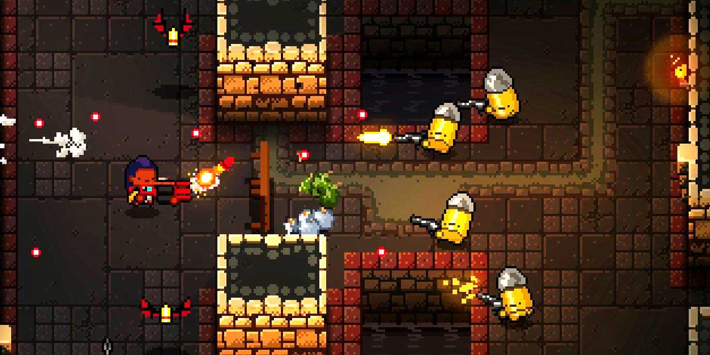 Эта игра в жанре roguelike bullet hell имеет процедурно генерируемые уровни и представляет собой стремительный опыт, который обязательно привнесет в вашу жизнь хаос и приключения. Если добавить второго игрока, то общее число участников игры достигнет 5 человек, что гарантирует много оружия и много веселья в подземелье