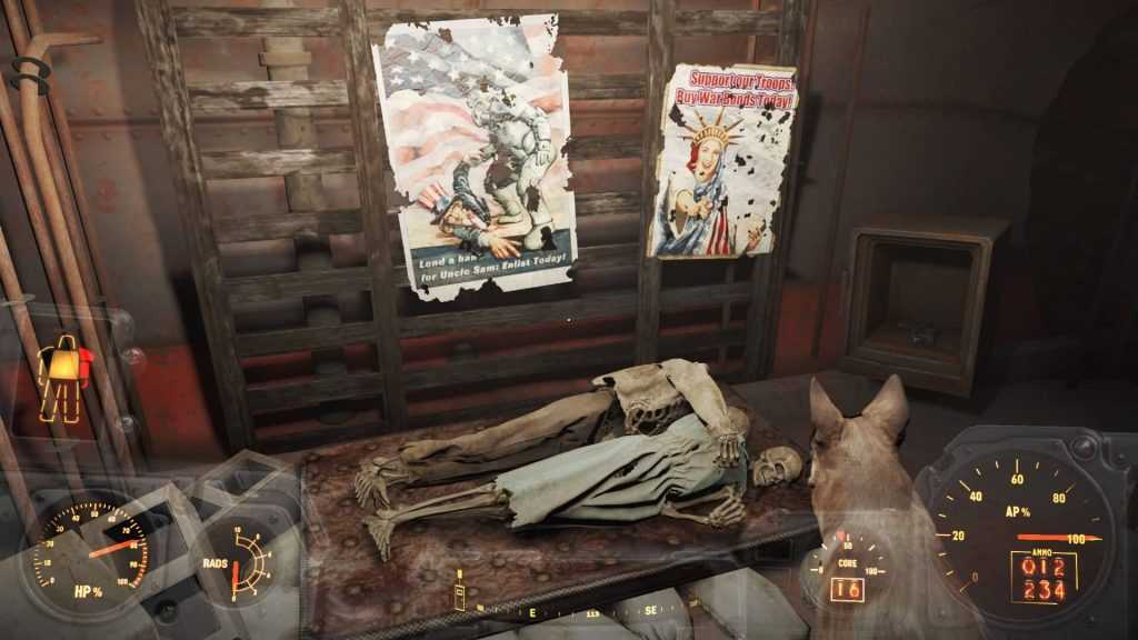 А вот скелетам из Fallout повезло меньше. Как и в случае с отсылкой к «Бегущему», нет никакой записки или дневника – только образ. Судьба героев остается загадкой, как и то, почему сценаристы Bethesda не сделали для этой сцены текстовый бэкграунд.