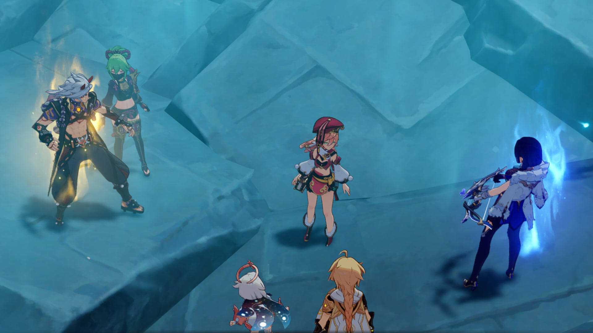 Продолжайте спускаться, затем идите за Арамой. По пути вы встретите Пиро слаймов и плесенников, но сражаться с ними необязательно.