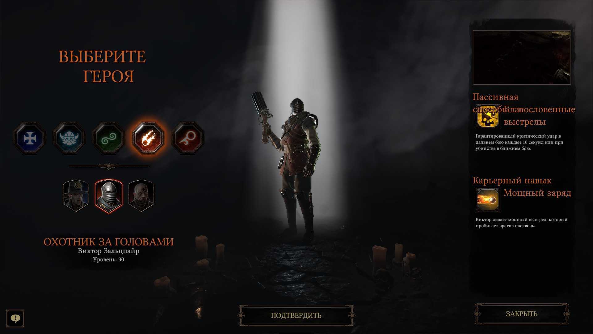 Бардин и Светлый Волшебник используют именно такие пушки, т.к. их способности располагают к подобному типу оружия. Выбирайте таких героев только в том случае, если уже освоились с Warhammer Vermintide 2.