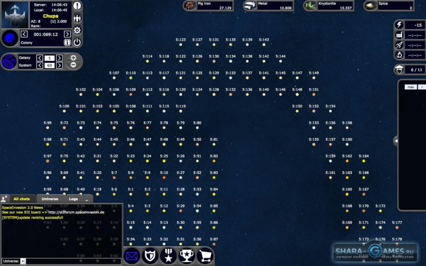 Также известная как «Повелители вселенных», эта игра является крепким представителем своего жанра. Игровой процесс довольно привычный, единственное поселение, постепенно развитие, наращивание производства, а потом и сражения с другими игроками, грабежи, интриги и войны альянсов. Дополняется это неплохой графикой, а также хорошей динамикой — разработчики постарались сделать так, чтобы игра не требовала огромного внимания по сравнению с конкурентами. Но, учитывая жанр, геймеру все равно придется следить за строительством и обороной территорий постоянно. Фактически, игра сильно напоминает Ogame.