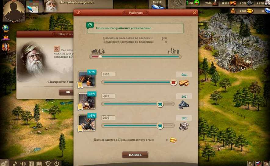 Всё развитие поселений в стратегической игре Империя Онлайн 2 происходит непосредственно в университетах, которые делятся на военные и мирные. Их игнорировать нельзя ни в коем случае, так как они увеличивают скорость и объёмы добычи ресурсов, делают более мощной армию, а самое главное делают более благосостоятельным народ, так как уровень счастья населения один из важнейших параметров. Если, ваш народ не будет доволен, то он может взбунтоваться, в самом худшем случае, вы потеряете город, и его займут мятежники. Так что мониторте уровень счастья и не допускайте отметки меньше 100 очков. Для строительства и развития в вашем распоряжении разнообразные ресурсы: