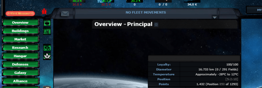 После простой регистрации в oGame вы попадаете на главную страницу вашего аккаунта, которая называется «Обзор». Это центр вашей молодой империи. В игре не так много платных бонусов, но они есть. Все из них немного улучшают какую-либо сторону игры, и одна улучшает интерфейса, называется эта опция «Командир». Все платные опции покупаются за Темную материю – эта игровая валюта приобретается за реальные деньги на официальном сайте игры oGame, так же ее можно заработать прямо в игре. Так называемый «донат» не особо отягощает жизнь игроков, которые предпочитают не вкладывать в игру реальные средства.