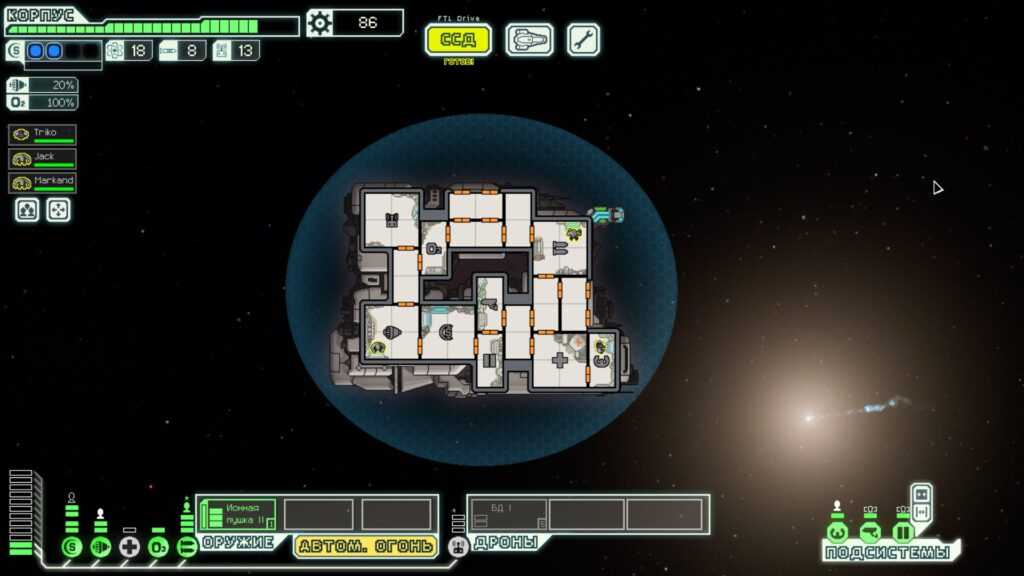 FTL удалось добиться эффекта, похожего на «ещё один ход» – в случае с FTL это будет звучать как «ещё один сектор». Приличная сложность, разнообразие оружия и модулей, а главное, захватывающая битва с боссом в конце каждого захода – вот за что любят FTL. Как и в любом рогалике, все события, встречи, сектора, союзники и враги генерируются случайно. Поначалу вам будет доступен только один корабль, однако уже после нескольких успешных (или не очень) полетов откроются новые варианты кораблей и членов экипажа. Чрезвычайно затягивающая игрушка!