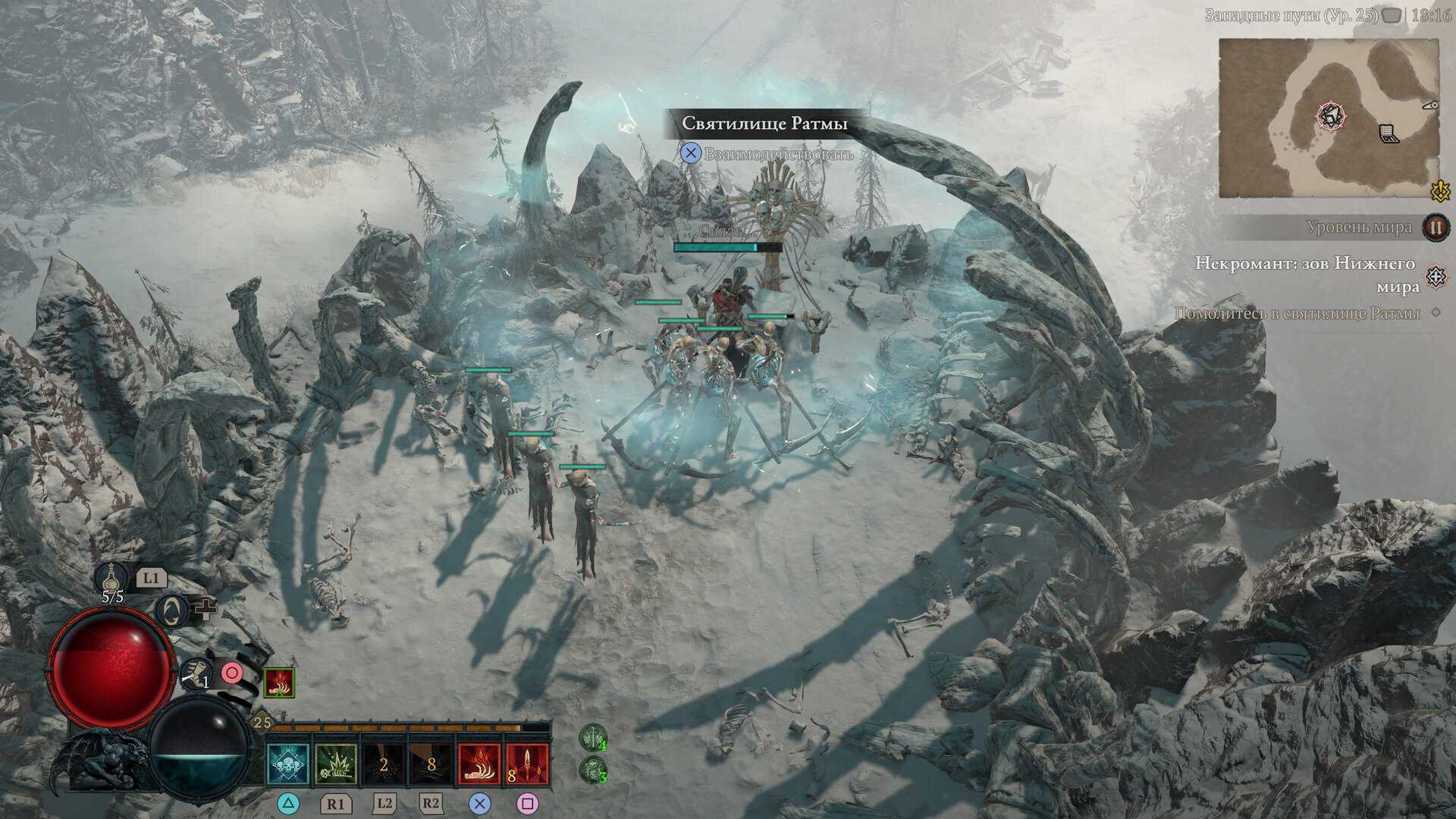 А вот варвар с диким криком прыгает в толпу, давит пару слабаков и крутится вихрем, добивая выживших. Или же некромант взрывает трупы под противником, превращая арену в минное поле. Сражаться приятно, поэтому в открытом мире не пробегаешь мимо тварей – разнести хочется вообще всех. Из-за веселых сражений Diablo 4 напоминает «Тетрис»: игрок вроде бы занимается банальными вещами, но оторваться невозможно.