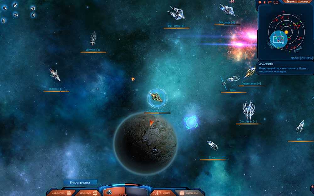 Веселая многопользовательская 2D-игра, в которой игроки, разделенные на разные фракции, сражаются друг с другом за контроль над галактикой. И хотя работы по разработке Gangs of Space официально остановлены (разработчики заявили об этом осенью 2018 года), вы все равно можете войти в нее и принять участие в увлекательных космических сражениях с участием десятков игроков. Интересно, что глобальная галактическая карта в Gangs of Space разделена на секторы с указанием фракций, которые их контролируют, что позволяет получить представление об успехах союзников и врагов, а также выбрать наиболее благоприятную область для атаки.