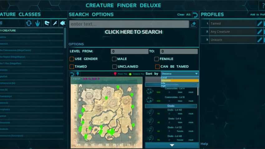 There’s nothing more frustrating in Ark: Survival Evolved than having to search endlessly for a dinosaur that you know is somewhere in the general area but are unsure of where. Creature Finder Deluxe is one of those mods that fortunately allows players to bypass the general frustration of the search process and instead obtain a GPS-like directional system to find what they’re looking for. Able to incorporate the creatures from mods, Creature Finder Deluxe is the ultimate lazy man’s tool for those who hate figuring out the coordinates in the game.