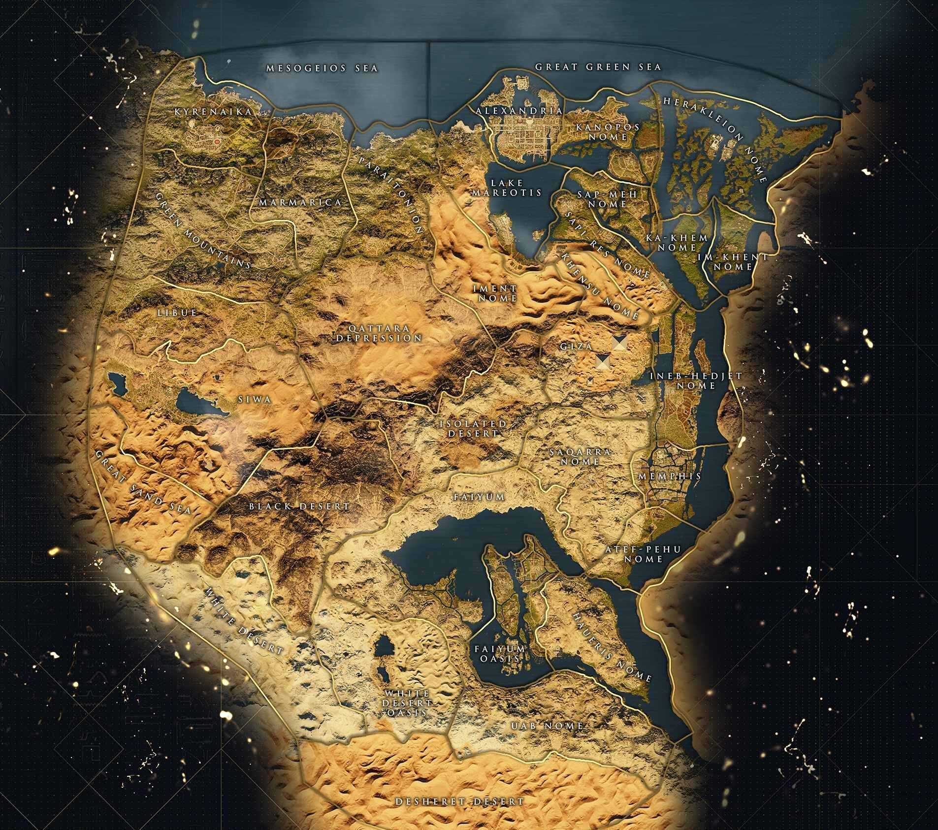 Игроку уже с начала прохождения доступна гигантская (аж 80 квадратных километров) карта Древнего Египта. Хотя значительную площадь занимают пустынные территории, в Origins хватает небольших поселений, а еще в ней есть огромные города Александрия и Мемфис – одних их хватило бы на отдельную игру. Также игрок может покорить Великие египетские пирамиды в Гизе, сплавляться по Нилу и даже забраться в гробницы фараонов. Словом, Origins затмила предыдущие части серии по масштабу.