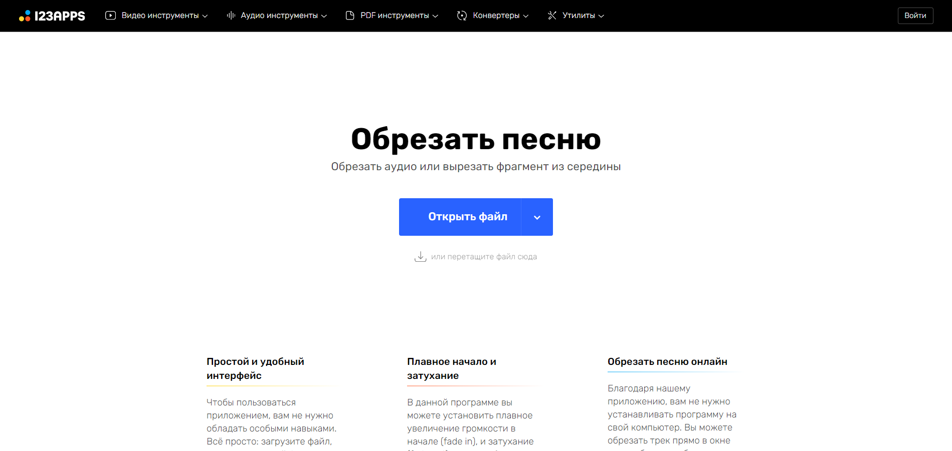 MP3Cut – это онлайн-сервис, позволяющий редактировать аудиофайлы прямо в браузере. Он обладает бесплатным функционалом и поддерживает более 300 форматов, поставляется с функциями постепенного угасания и увеличения уровня звука.