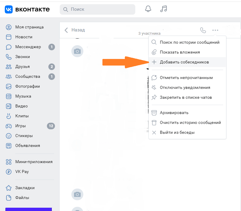 Как добавлять в беседу новых участников?
