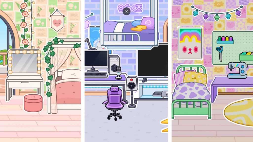 Так, если в полном распоряжении игрока две комнаты, почему бы одну из них полностью не отвести под пижамные вечеринки, полностью заставив кроватями? Вторая комната — уже личная, там и столик с косметикой, и комод, в котором лежат вещи, и приятные взгляду предметы декора.