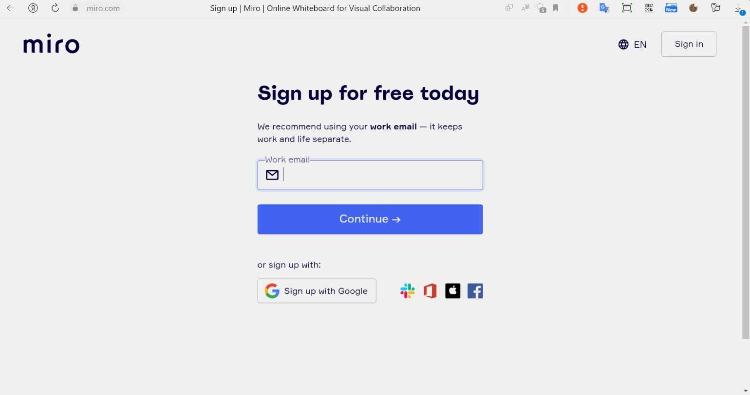 Начало регистрации на сервисе MiroСкриншот: Miro / Skillbox Media