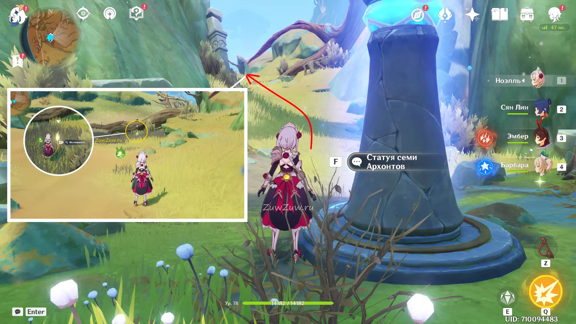 После этого для завершения этого раздела необходимо отправиться в Ванарану прошлого, используя телепорт к Статуе Семи Архонтов и возле поваленного дерева неподалеку исследовать точку.