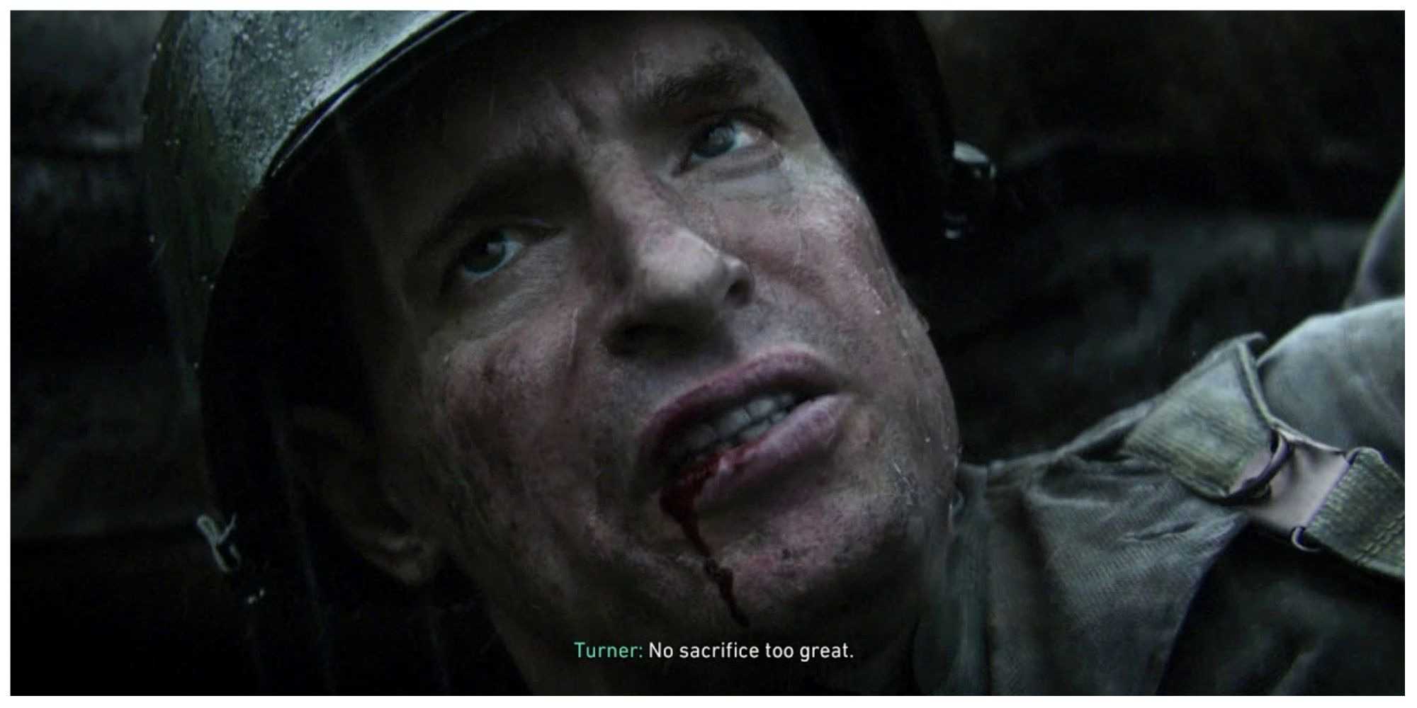 Несмотря на то, что WW2 является относительно неудачной игрой в серии Call Of Duty франшизы, в ее кампании было несколько весьма напряженных моментов. Ни один из них не показывает этого больше, чем самопожертвование Джозефа Тернера. Прижатый врагом к земле, не видя выхода, уже раненый Тернер демонстрирует свое упорство и лидерство, заставляя вас отступить, пока он сдерживает врага. В душераздирающей сцене, усугубленной жестокостью, его без раздумий расстреливают наступающие немцы. Усугубляет его смерть как одну из самых печальных во франшизе тот факт, что на посту командира его заменил самый большой придурок в игре — Пирсон.