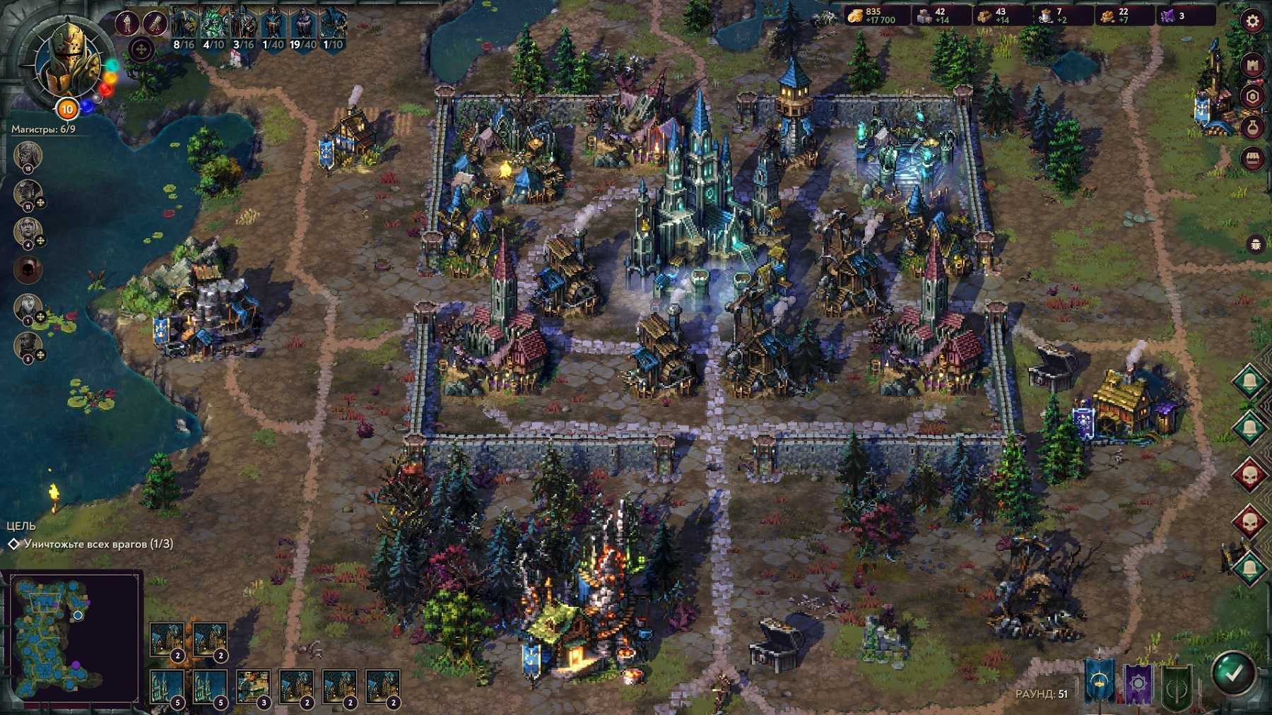 Опять же, не всегда понятно, где был каждый конкретный магистр. Справедливости ради, объект блестит, если вы еще в нем не побывали, но спустя пару часов игры голова идет кругом: точно ли я выделил магистра Виктора, когда осматривал карту? А что на счет магистра Олега? О, в дне пути как раз дерево +1000 опыта, чуть не пропустил… А героев, напомню, доступно девять штук. На больших картах желательно нанять всех.