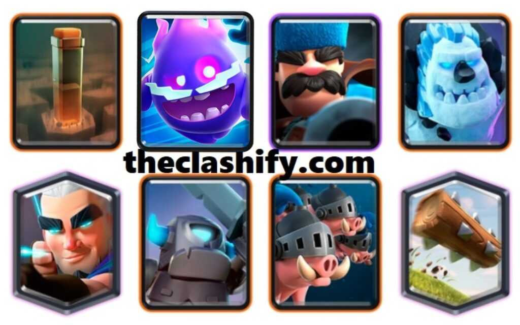This Clash Royale Magic Archer Royal Hogs Electro Spirit Deck has a 53.1% Win Rate, In this, The hunter and mini Pekka are two great defensive units that are capable of handling hog riders, ram riders, giants, golems and Electro Spirit is a great cycle card but more importantly, it’s a great support card for the hogs, magic archer or hunter.