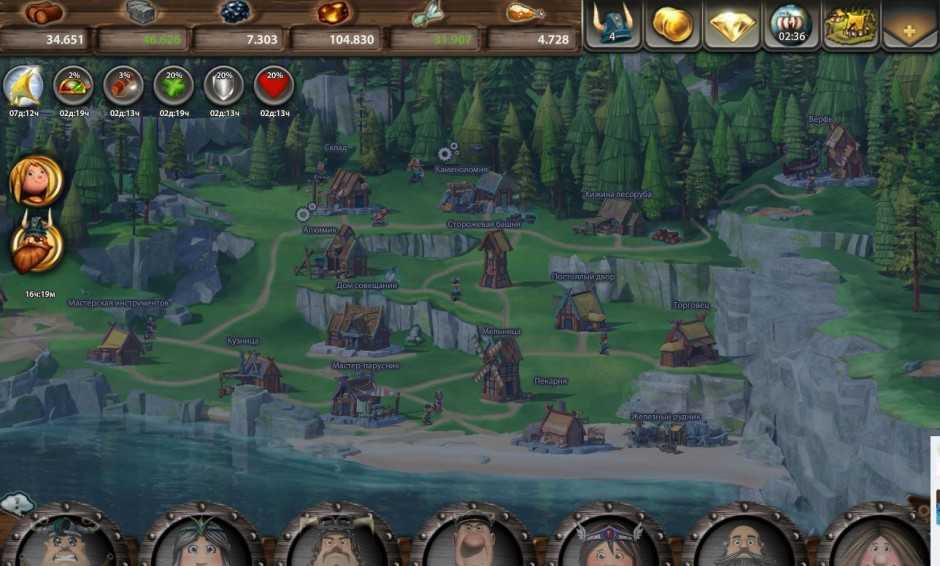 Быстрый — плаваем не спеша, набираем золото, потом в складе меняем золото на другие ресурсы за шлемы. Проблема в том. что склад очень ограничен по вместительности, так что надо еще и тратится на улучшение склада. Если вики шлемов много, то можно еще мгновенно строить склад, если мало, то можно ждать отстройки склада. Поначалу еще дом совещаний дает увеличение хранимых ресурсов. Полученные таким образом ресурсы можно еще тратить на алхимика, так как знания единственный ресурс, который не добыть в походах и разменом склада, а поначалу они очень нужны для увеличения отряда до 3, героев в поселении до 7 и повышения характеристик всех героев.