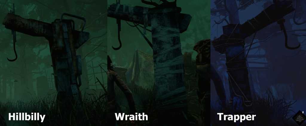 Прислушивайтесь к различным звукам, чтобы понять, с кем вы имеете дело в очередном раунде. К примеру, металлический звук говорит о том, что Охотник разместил где-то на карте медвежий капкан. Рокот заводящейся бензопилы указывает на то, что вам предстоит столкнуться с Деревенщиной. А отдалённый звон колокола намекает на появление Призрака в плаще. Разбросанные по локации крюки меняют свой вид в зависимости от убийцы – отличительным знаком Призрака являются белые бинты, намотанные на стойку с крюком, поэтому вам хватит лишь одного взгляда, чтобы понять, с кем вы столкнулись на этот раз.