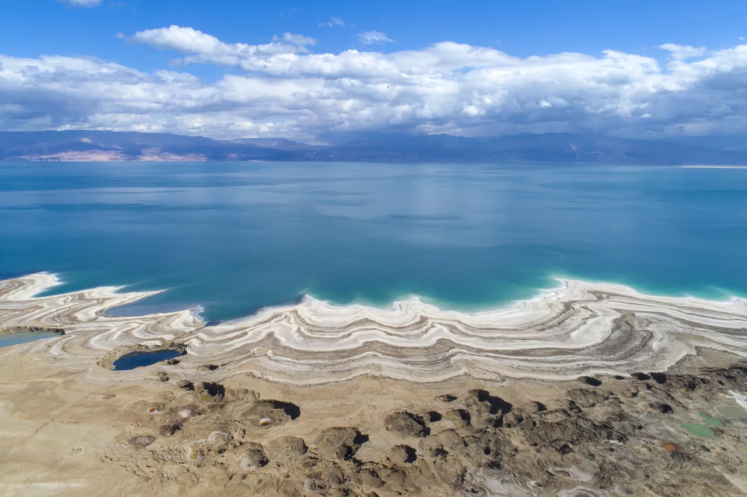 It is one of the saltiest water bodies in the world – 34% – which gave it the Hebrew name “salt sea” (Joshua 15:5): “And the east border was the salt sea, even unto the end of Jordan”. The salt levels makes life inside the water impossible, hence the name “dead” sea.