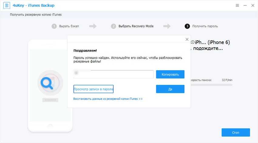 Восстановить утерянный пароль с помощью 4uKey — iTunes Backup