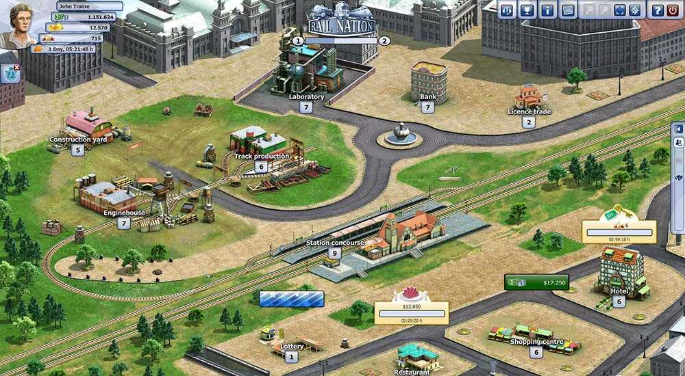Rail Nation – захватывающая браузерная стратегия, где основной акцент идет на экономическую составляющую, доступна для компьютеров, планшетов и мобильных устройств. В игре у геймера есть возможность создать собственную железнодорожную организацию, развивать соответствующую инфраструктуру, прокладывать железные пути, строить станции и другое. Герою дается карта и право выбора эпохи (от этого зависит вид города и техники).