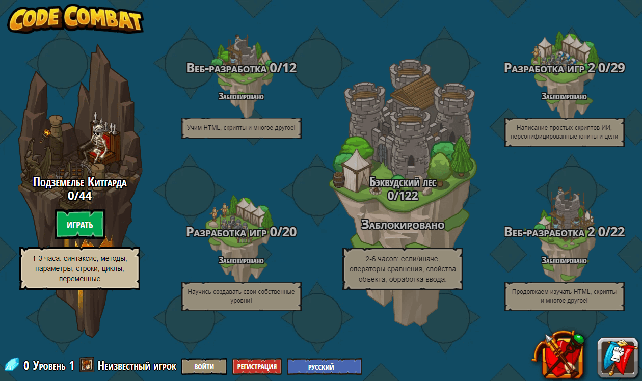 CodeCombat – игровая платформа для детей с возможностью обучения программированию в процессе написания кода. В CodeCombat учащиеся могут изучить сразу несколько языков программирования, это Python, JavaScript, LUA, C++ и HTML.