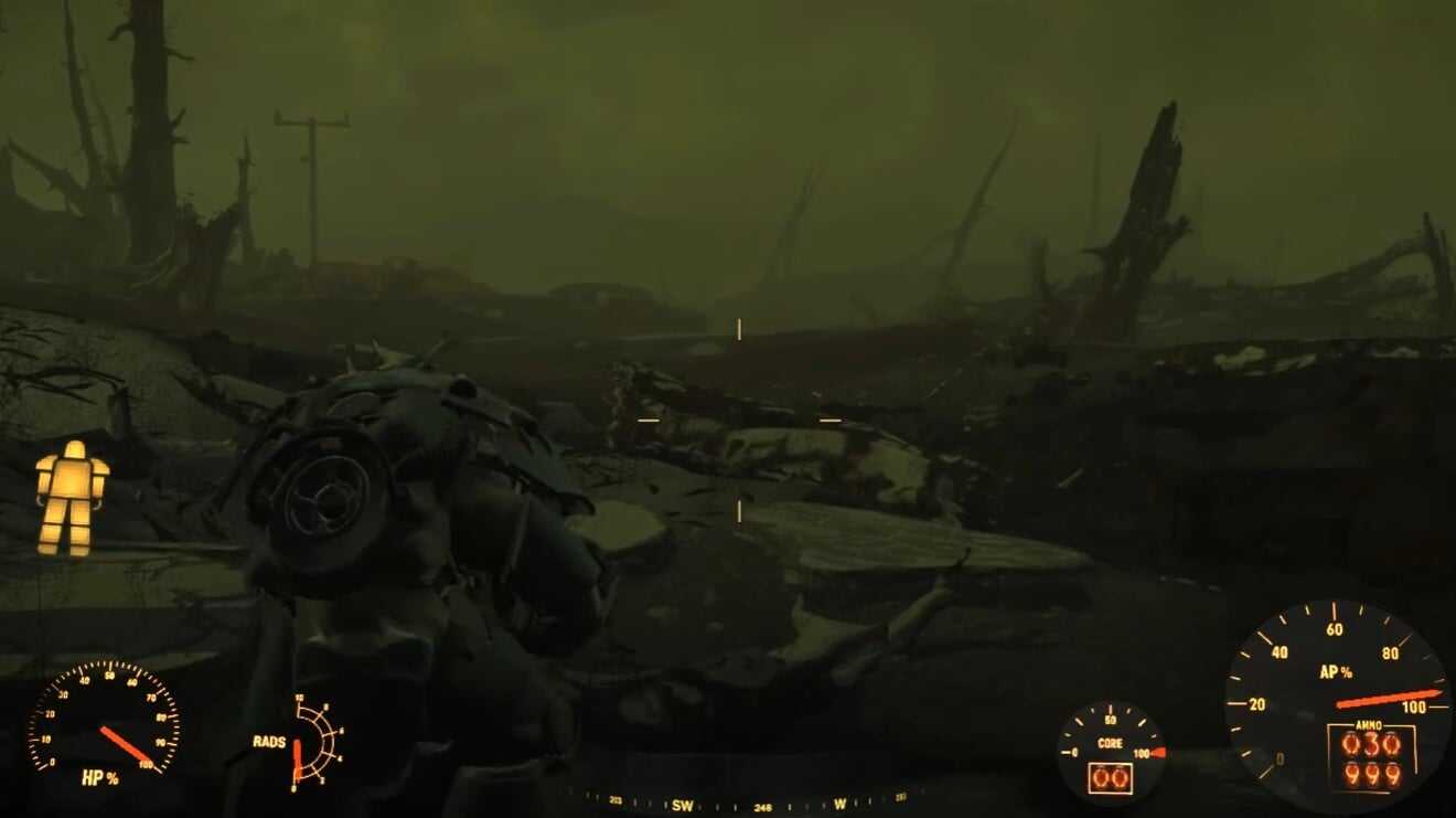 Даже в силовой броне с хорошей защитой от радиации здесь опасно. Излучение будет вам досаждать, а бесконечные гули вместе с когтями смерти способны истощить не вас самих физически, то хотя бы ваш боезапас.