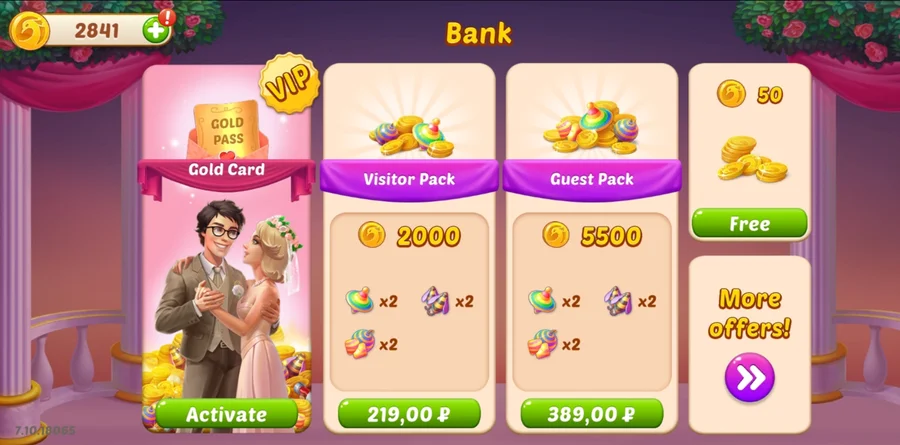 - Гостевой набор — в набор входит 5500 монет, 2 бустера юлы, 2 пчелы и 2 бомбы.