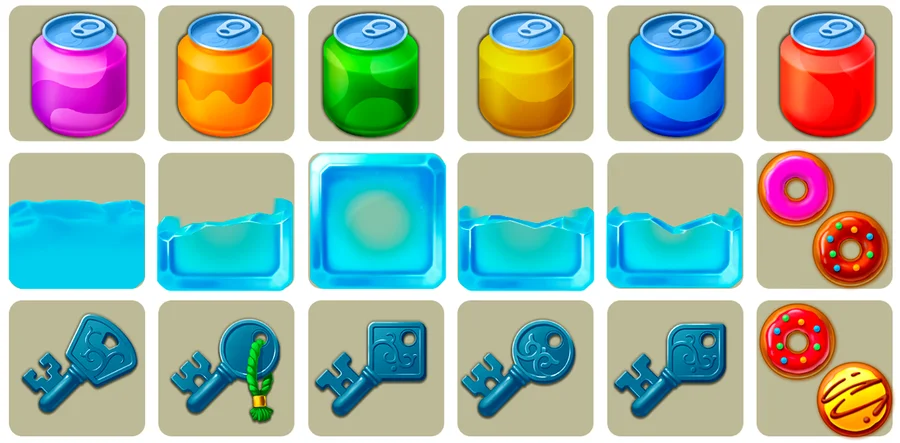 Нетипичные элементы. Это могут быть утки, ключи или что-то другое. Это отдельные элементы, которые невозможно уничтожить, и этого не требуется. Их необходимо переместить в нижнюю часть поля для того, чтобы достать.
