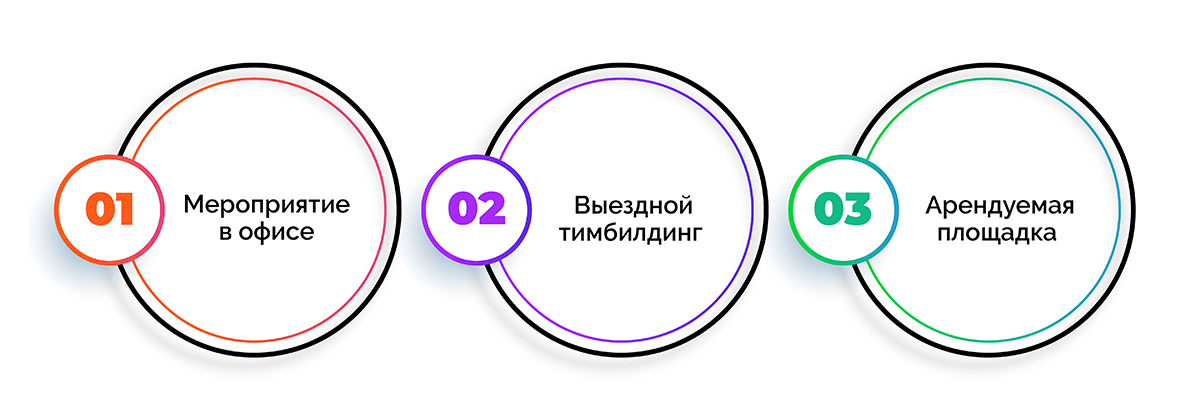 Кроме того, тимбилдинг делится по месту проведения – в офисе либо за его пределами.