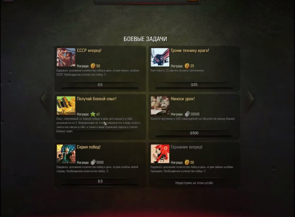 Как и, например, в WoT, в Generals есть боевые задачи, выполняя которые игрок получает определённые награды: токены, серебро, удвоенный опыт за первую победу и т.п.