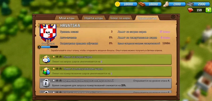 Уровень опыта клана и очки опыта. Уровень клана растет по мере накопления очков опыта, зарабатываемых участниками в битве кланов. Чем выше уровень клана, тем больше привилегий получают его члены.