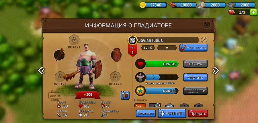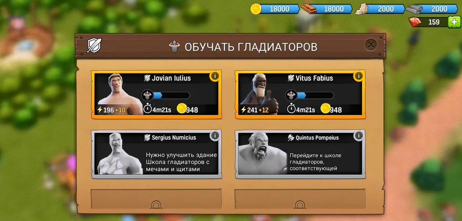 - Недоработки в прокачке гладиаторов и строительстве города. К примеру, нет второй очереди строительства;