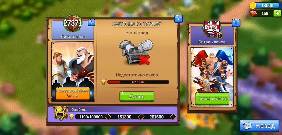 - Результат — в конце битвы, если ваш клан победит, вы получите все накопленные награды. Если ваш клан проиграет, вы получите только часть наград.