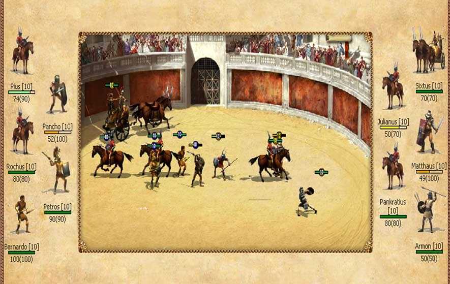 Как вы могли уже понять, что солдаты арены соответствуют гладиаторам, существовавшим в действительности. В игре их предусмотрено 10, все они имеют разные характеристики, слабые и сильные стороны:
