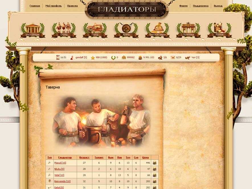 Игра постепенно открывает новые возможности, позволяя вам улучшать своего гладиатора и бросаться в увлекательные приключения. Это делает Gladiatus одной из самых популярных браузерных онлайн-игр в своем жанре, подарив множество часов увлекательного и захватывающего геймплея.
