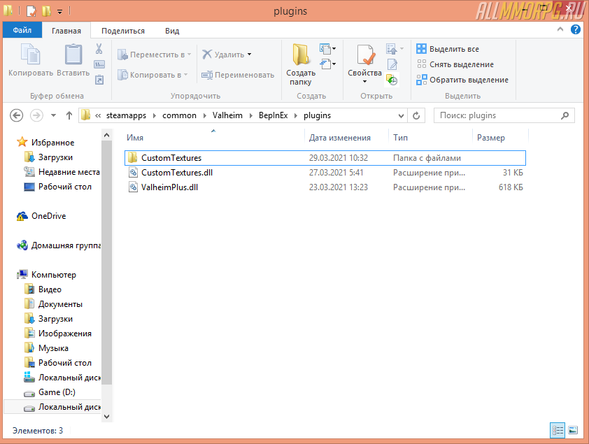 Далее нужно запустить игру, зайти в игровой мир и закрыть клиент Valheim. Если все сделано правильно, после этого в разделе BeplnEx > plugins появится папка CustomTextures.