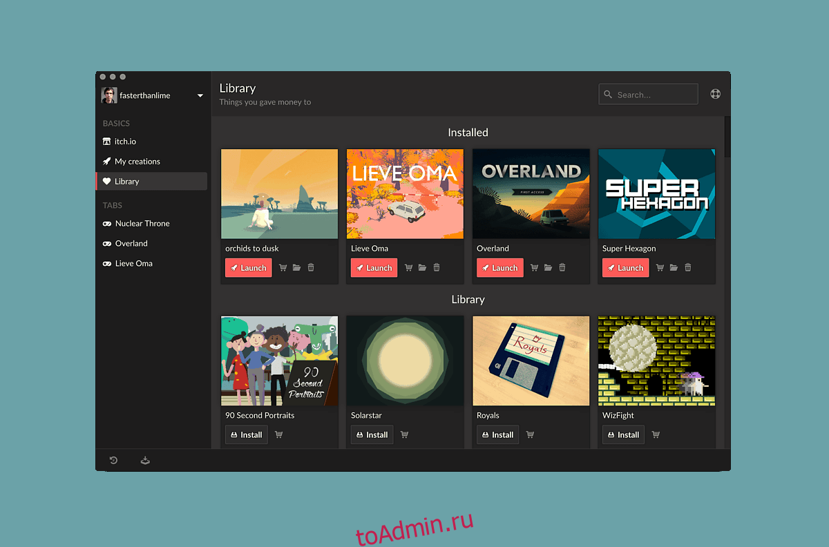 Платформа в первую очередь ориентирована на инди-разработчиков, и разработчикам платят справедливую долю.Itch.io имеет отличное настольное приложение для Linux, которое может соперничать со Steam по простоте использования, особенно при покупке видеоигр.Кто угодно может отправить и загрузить видеоигру, а также создать витрину на Itch.io.Игры не ориентированы на открытый исходный код, но в сервисе есть десятки видеоигр, поддерживающих Linux.Как и Steam, Itch.io имеет функцию двухфакторной аутентификации, которая помогает защитить вашу учетную запись от хакеров.